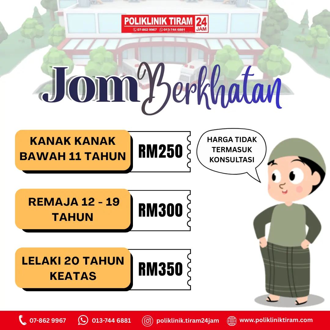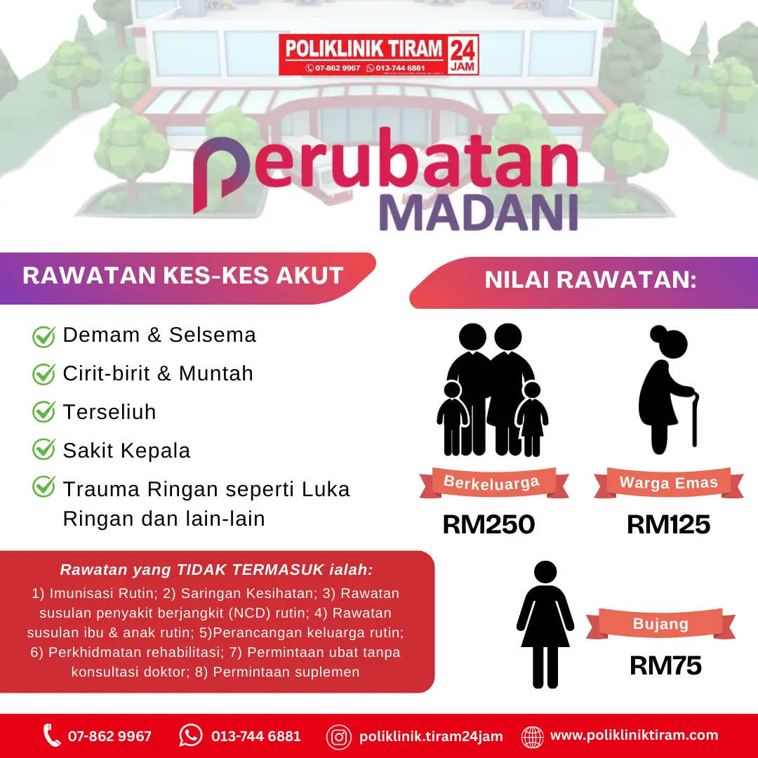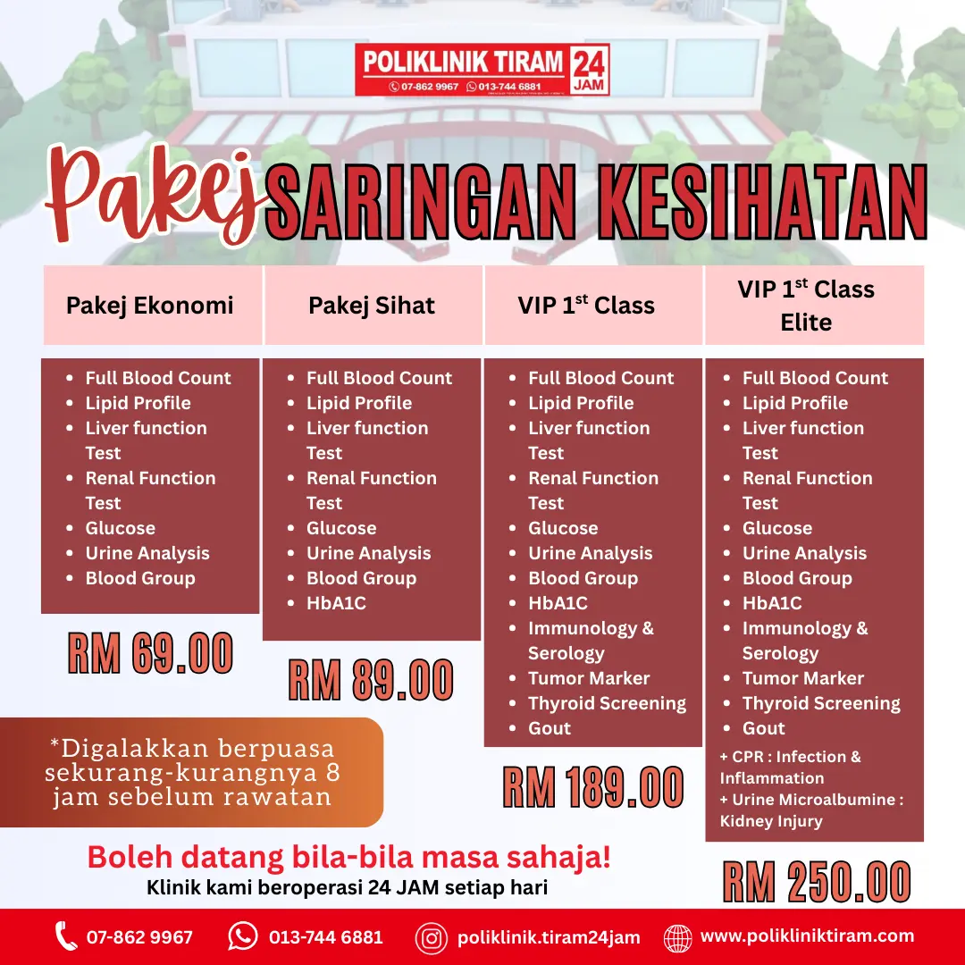 Poliklinik Tiram 24 Jam menyediakan rawatan kesihatan yang menyeluruh dengan doktor pakar yang berpengalaman. Whatsapp kami untuk bertanyakan masalah kesihatan anda.